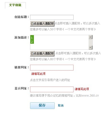 從上圖可以看出360點睛的創(chuàng)意添加編輯形式和百度鳳巢基本相同
